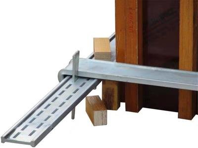 首先介紹一下方柱扣加固件的組成:方柱的鋼筋是由4塊鋼板和4塊鐵楔組成。每個卡板的一端是u形彎頭,另一端滿是兩排準確尺寸的方孔。四塊鋼卡板通過肘部的交互鏈接固定在方柱模板周圍。將四塊楔形的鐵塊壓入夾板末端的方孔中,以擰緊模板。