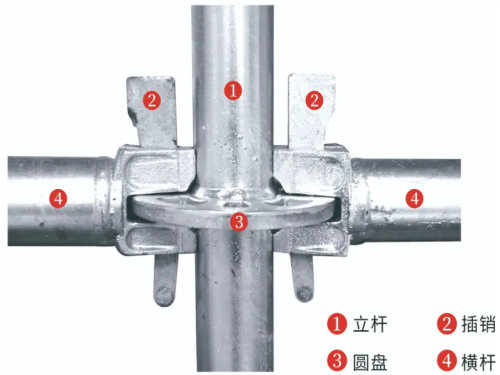 橫桿主要由三部分組成:鋼管、插銷(xiāo)板和扣件頭。